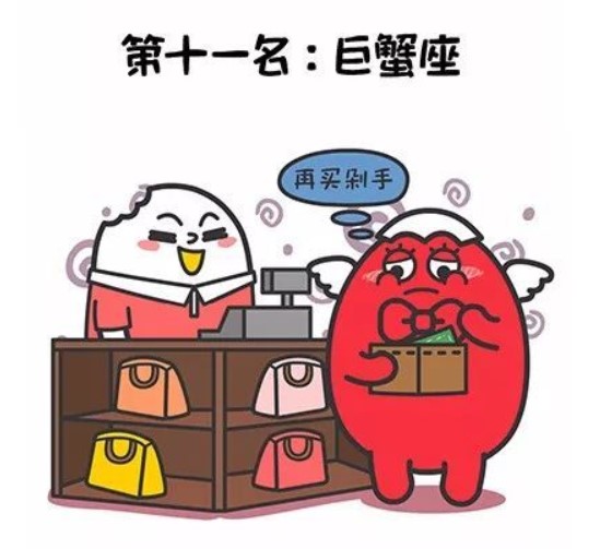 巨蟹是個顧家的好孩子,雖然也經常克制不住自己的購物欲,但總能適可而止,不然整天喝西北風,那誰受得了?